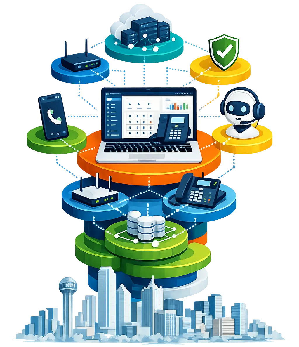 Add users, locations, and features instantly through our cloud platform. Whether you’re expanding from 5 to 50 employees or opening new offices across Dallas–Fort Worth, our business VoIP phone systems Fort Worth TX solutions grow with you.